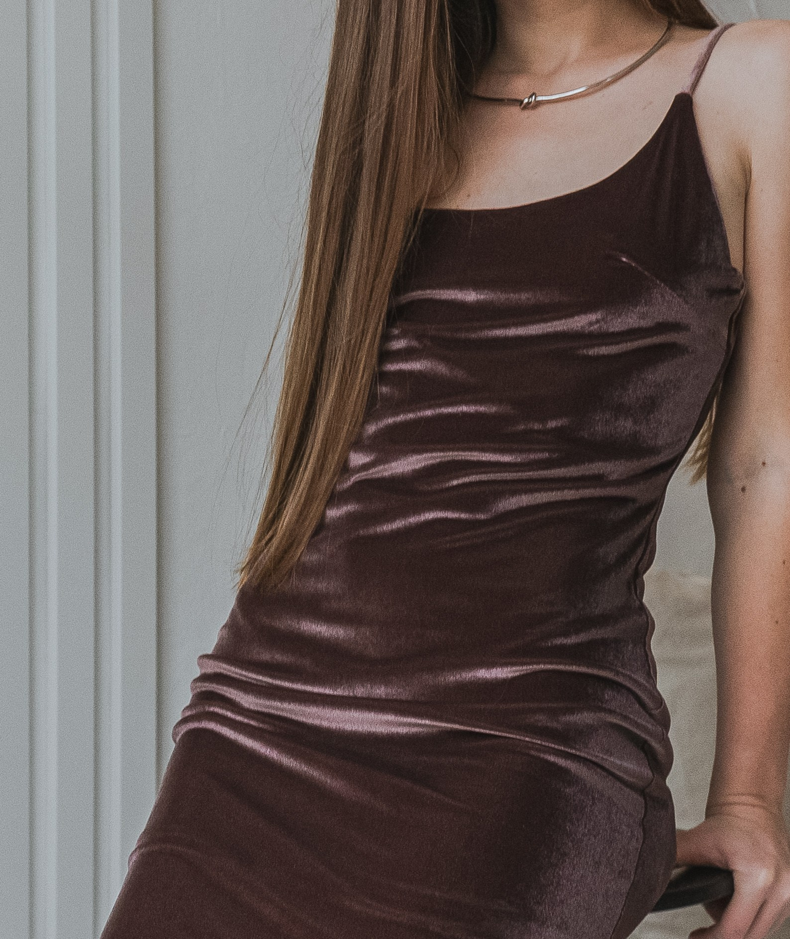 Бархатное платье на бретельках